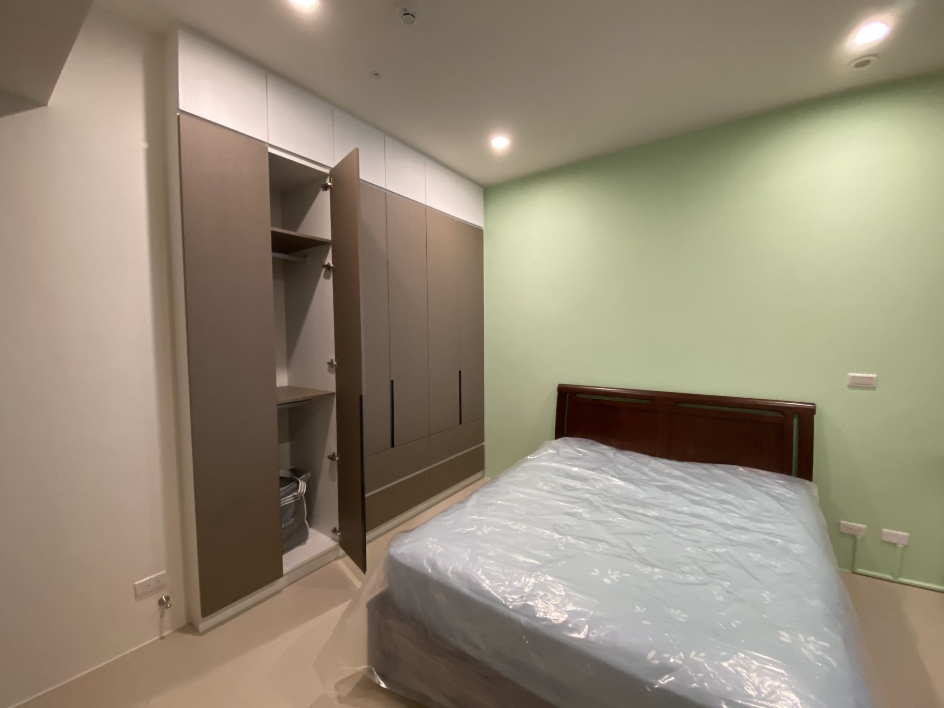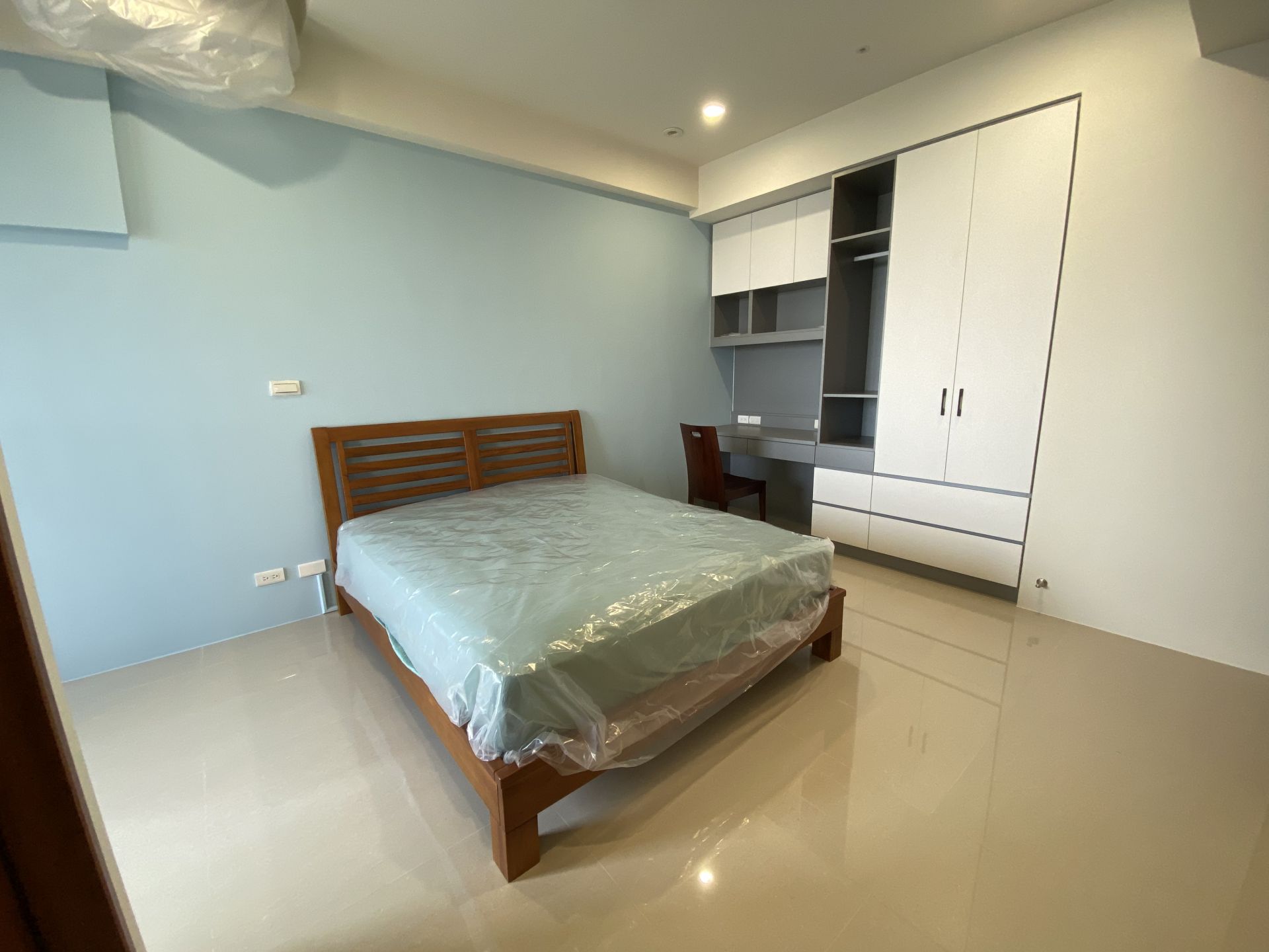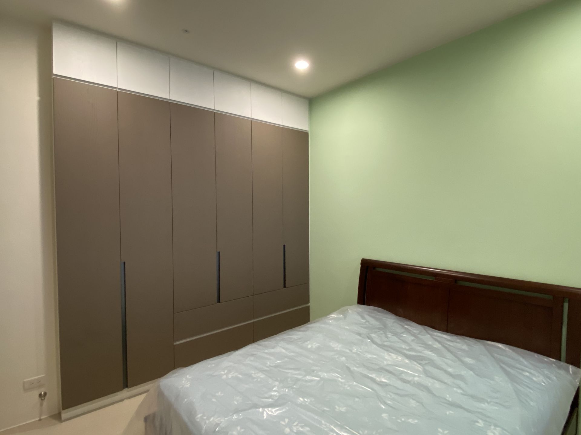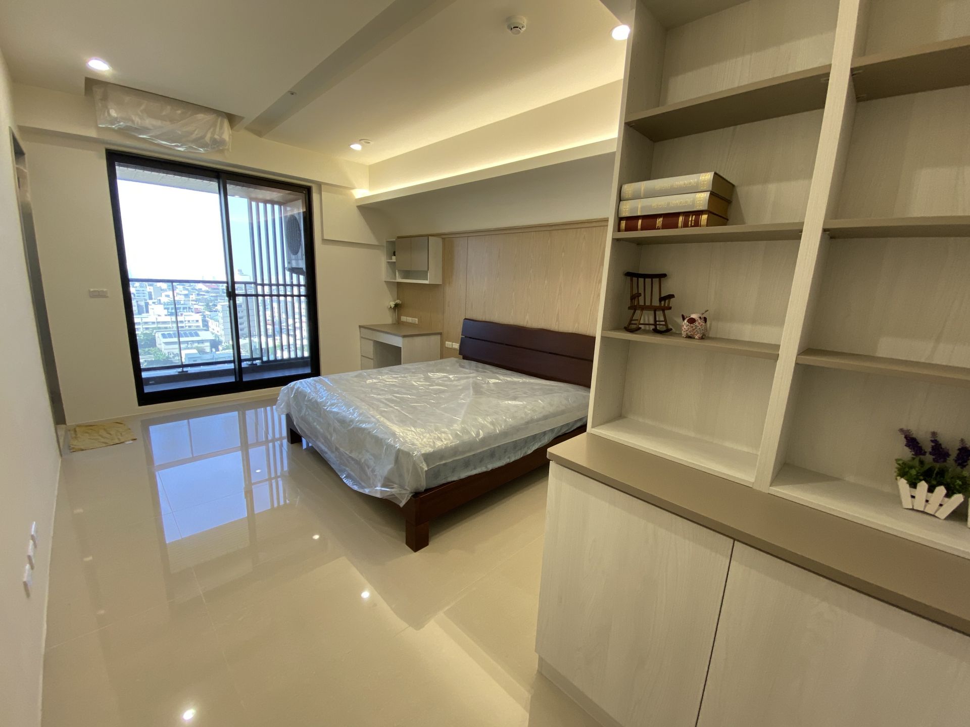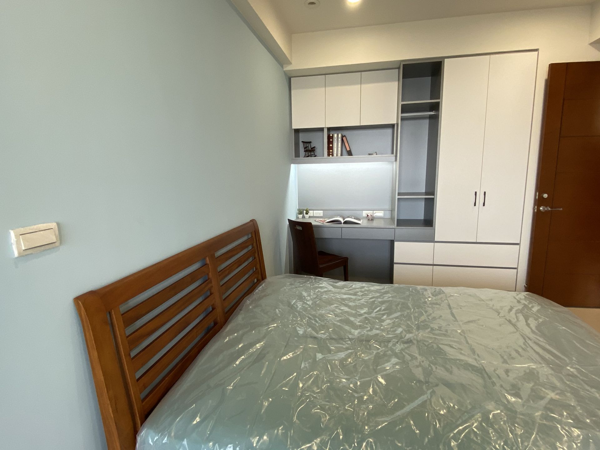 客廳區域,我們運用木作沙發半高牆搭配系統櫃,創造舒適的休憩氛圍,並在電視牆貼上文化石,增添自然紋理。餐廳旁的餐桌旁收納矮櫃組,讓用餐時光更加便利。主臥室內,木作造型斜角圓弧天花板與木作床後造型背牆,營造出溫馨的休憩氛圍,並搭配實用的系統化妝台,滿足日常所需。次臥則規劃了系統書桌組與系統開門衣櫃,兼顧學習與收納。