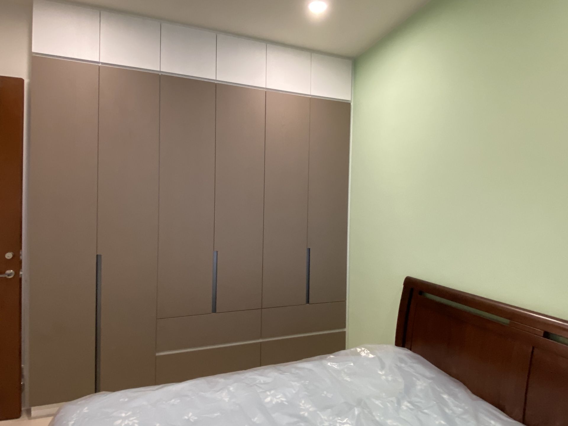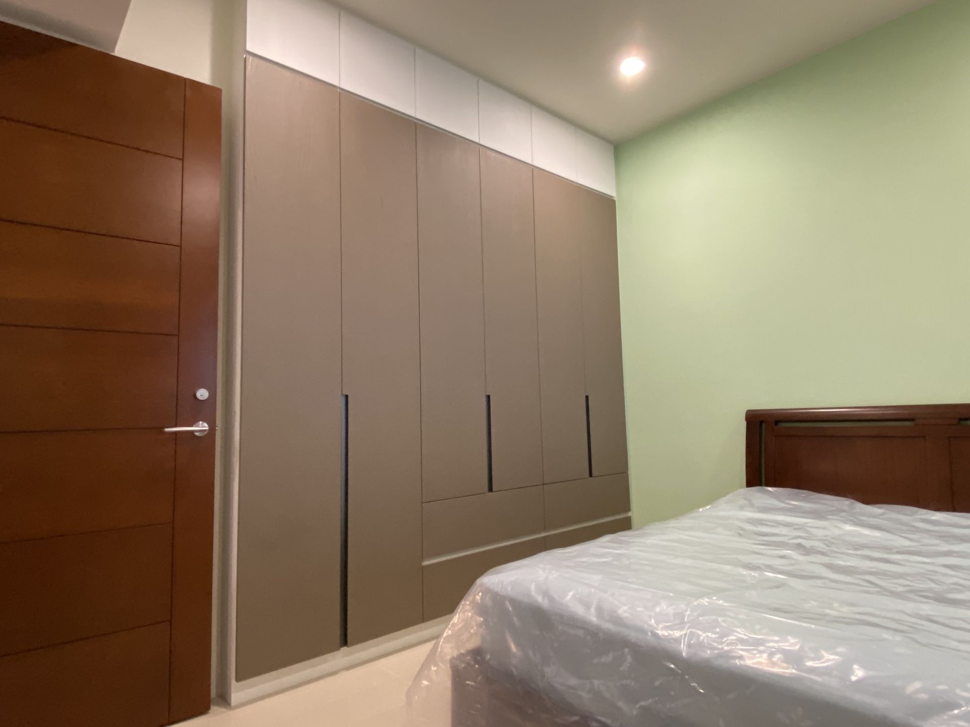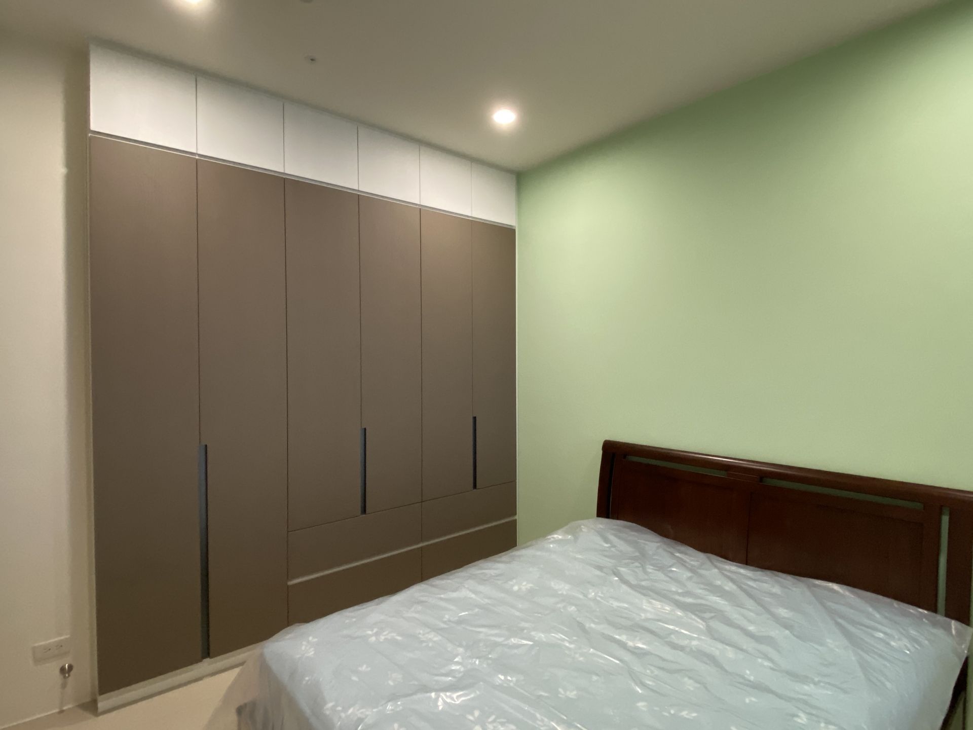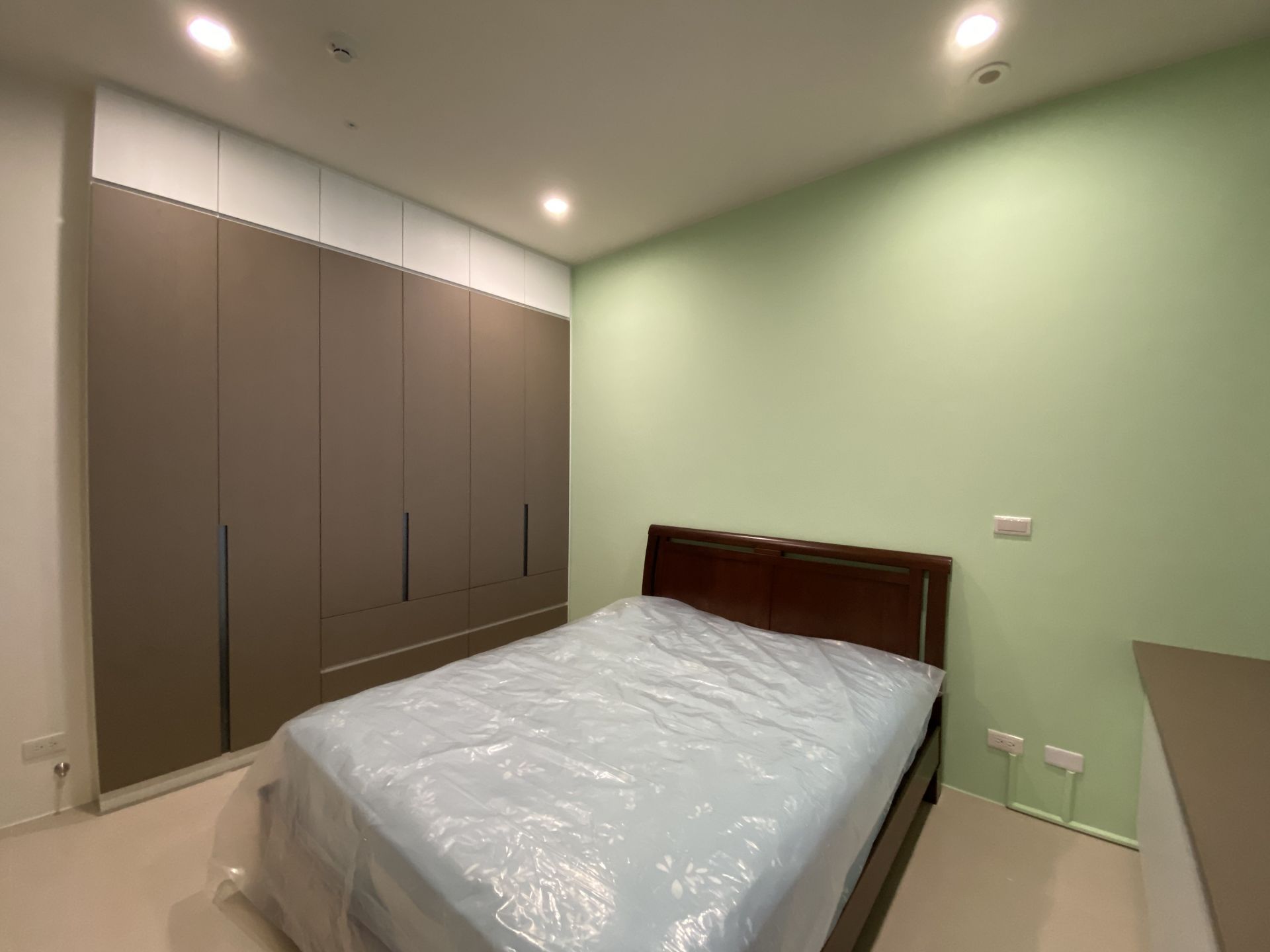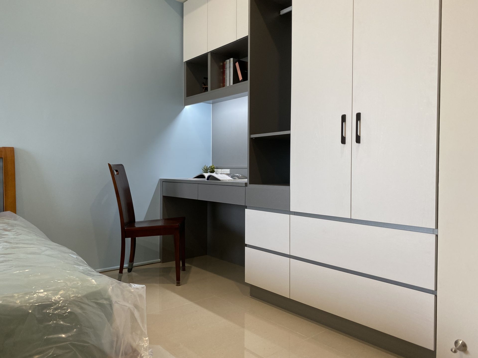 客廳區域,我們運用木作沙發半高牆搭配系統櫃,創造舒適的休憩氛圍,並在電視牆貼上文化石,增添自然紋理。餐廳旁的餐桌旁收納矮櫃組,讓用餐時光更加便利。主臥室內,木作造型斜角圓弧天花板與木作床後造型背牆,營造出溫馨的休憩氛圍,並搭配實用的系統化妝台,滿足日常所需。次臥則規劃了系統書桌組與系統開門衣櫃,兼顧學習與收納。