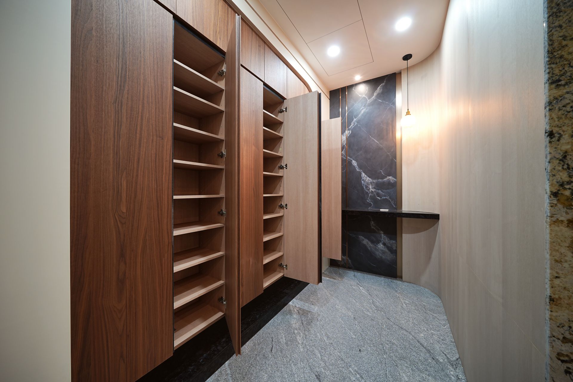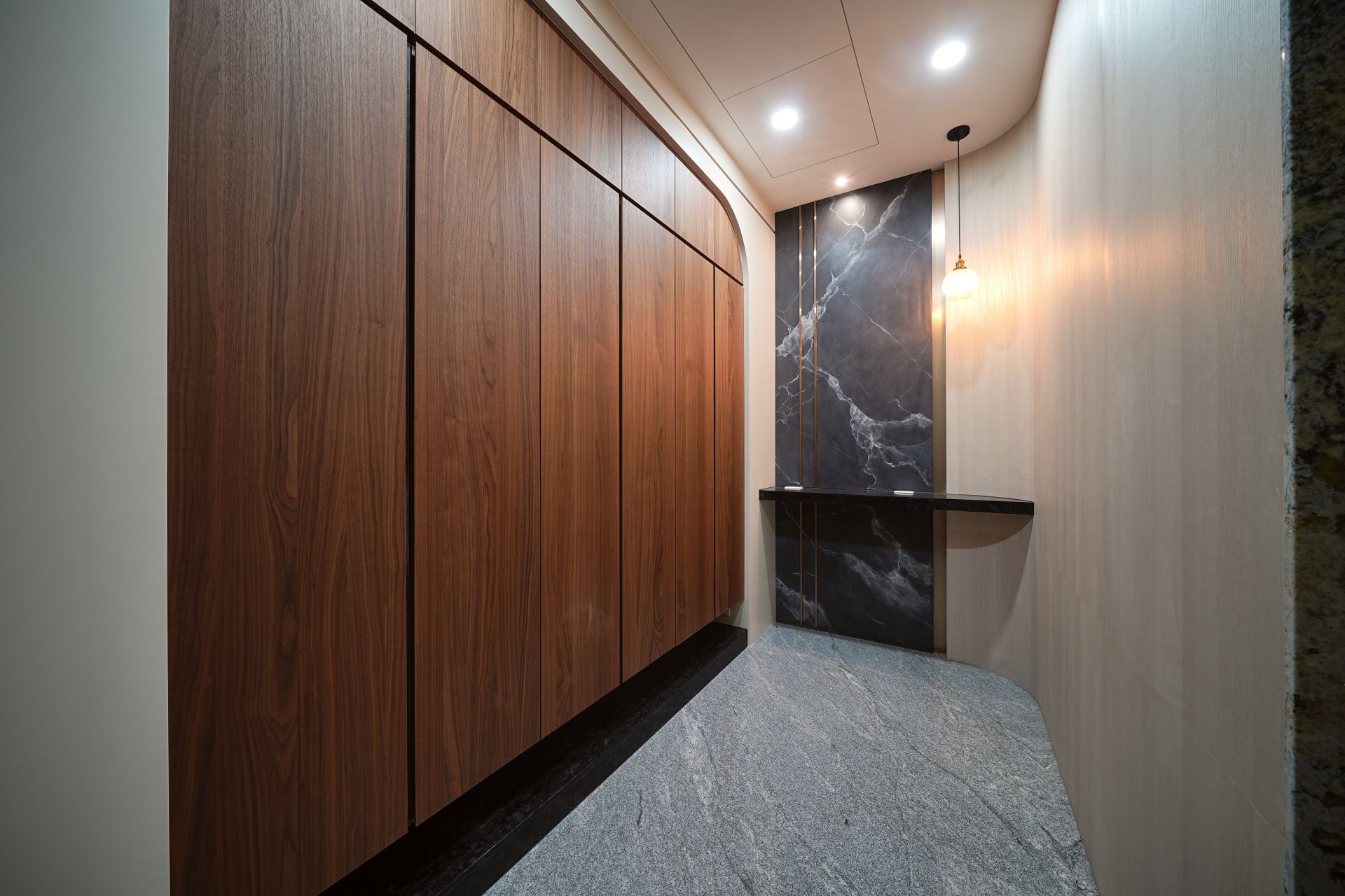 這棟位於關廟的自地自建住宅,由德盈台南室內設計整體規劃,包含建築外觀、庭院圍牆及室內空間。設計理念汲取新古典的優雅比例,融入現代輕奢的細膩質感。從精選的大理石紋理、金屬細節,到溫潤的木質元素,皆展現對細節的極致追求,營造內外一致的協調美感。考量自地自建的特性,室內設計深度結合屋主生活需求,量身打造機能完善的居住空間。德盈台南室內設計運用台南系統家具與台南系統櫃設計的專業,搭配高品質的台南系統傢俱,期盼藉由此案,展現從外而內的客製化設計實力,為屋主構築獨一無二的理想家園。