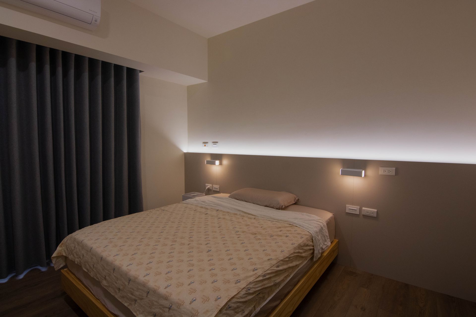 主臥室以木作床頭背牆外加 LED 光帶營造溫馨氣氛,讓空間更具層次感。德盈對於台南辦公室設計也同樣充滿熱情與專業,致力為每個空間創造最大價值。透過精選台南系統家具,我們讓家中的每個角落都充滿自然氣息,為您打造舒適的避風港。