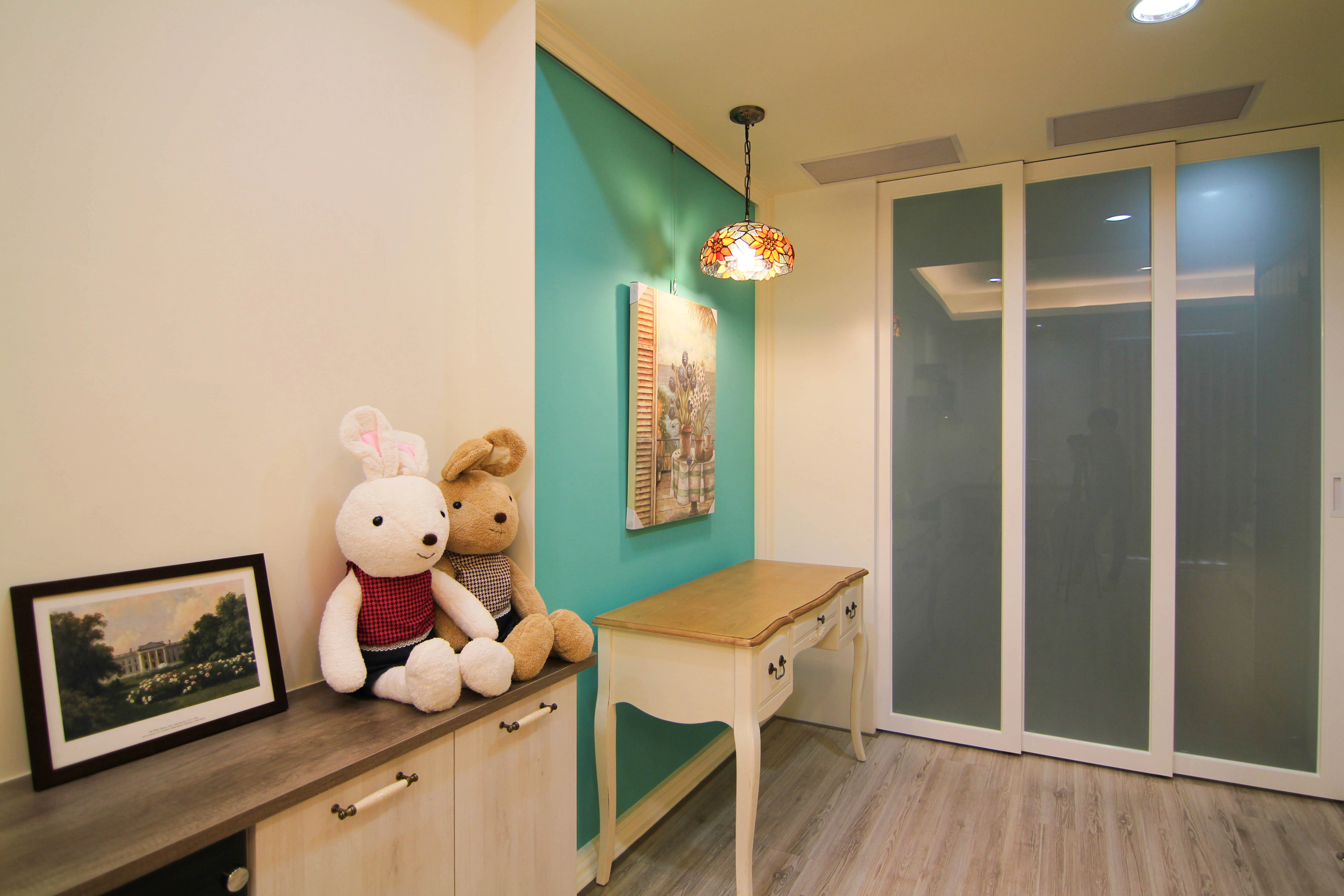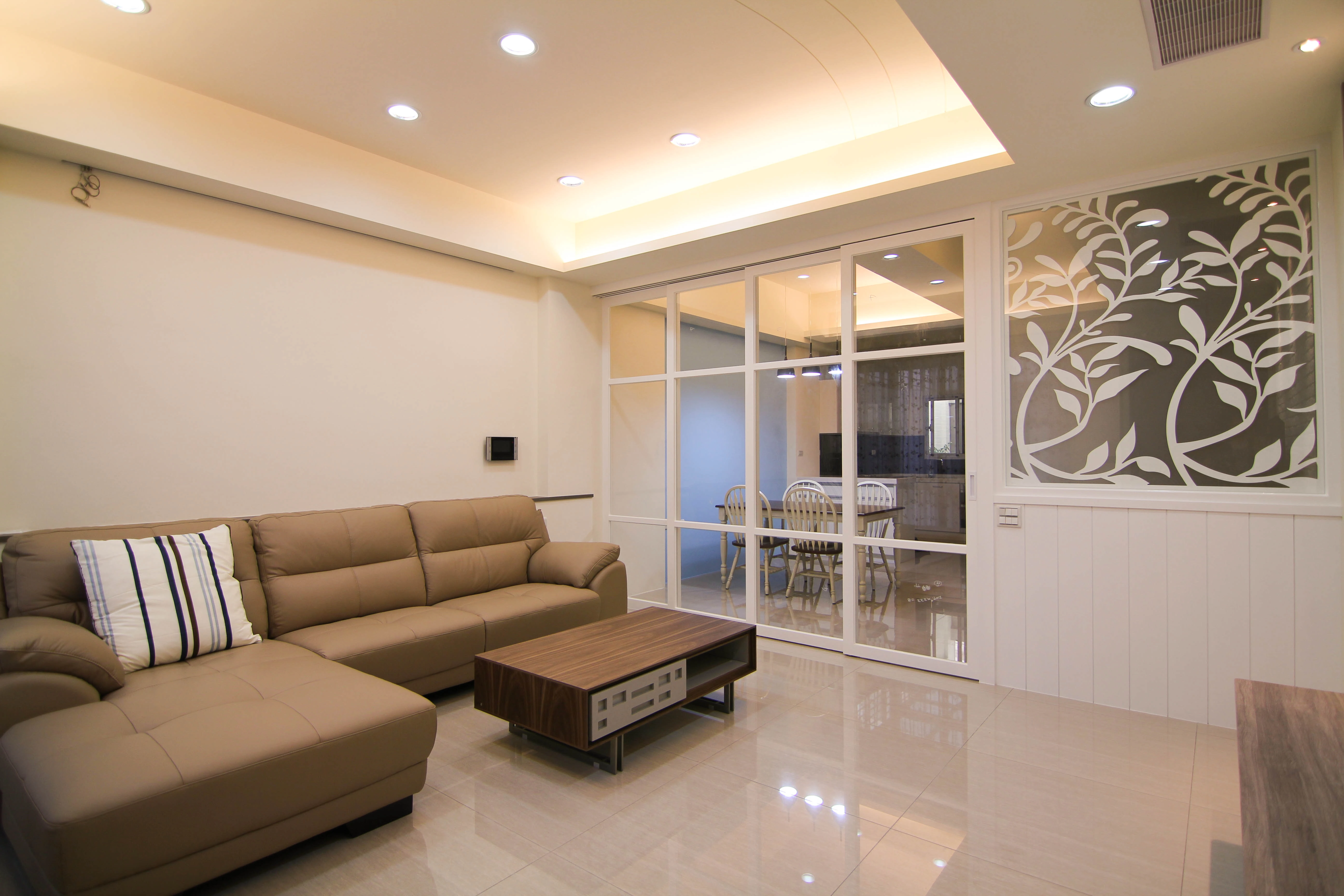 德盈在安南區「敦煌富水驛」,為屋主構築了一處溫馨的美式鄉村宅。我們以文化石電視牆奠定質樸基調,並巧妙運用白色方格推拉門,讓空間既能靈活區隔,又保有極佳的採光穿透感。搭配造型花窗的點綴,細膩堆疊出經典且舒壓的鄉村氛圍,讓居家環境充滿閒適的休閒氣息。