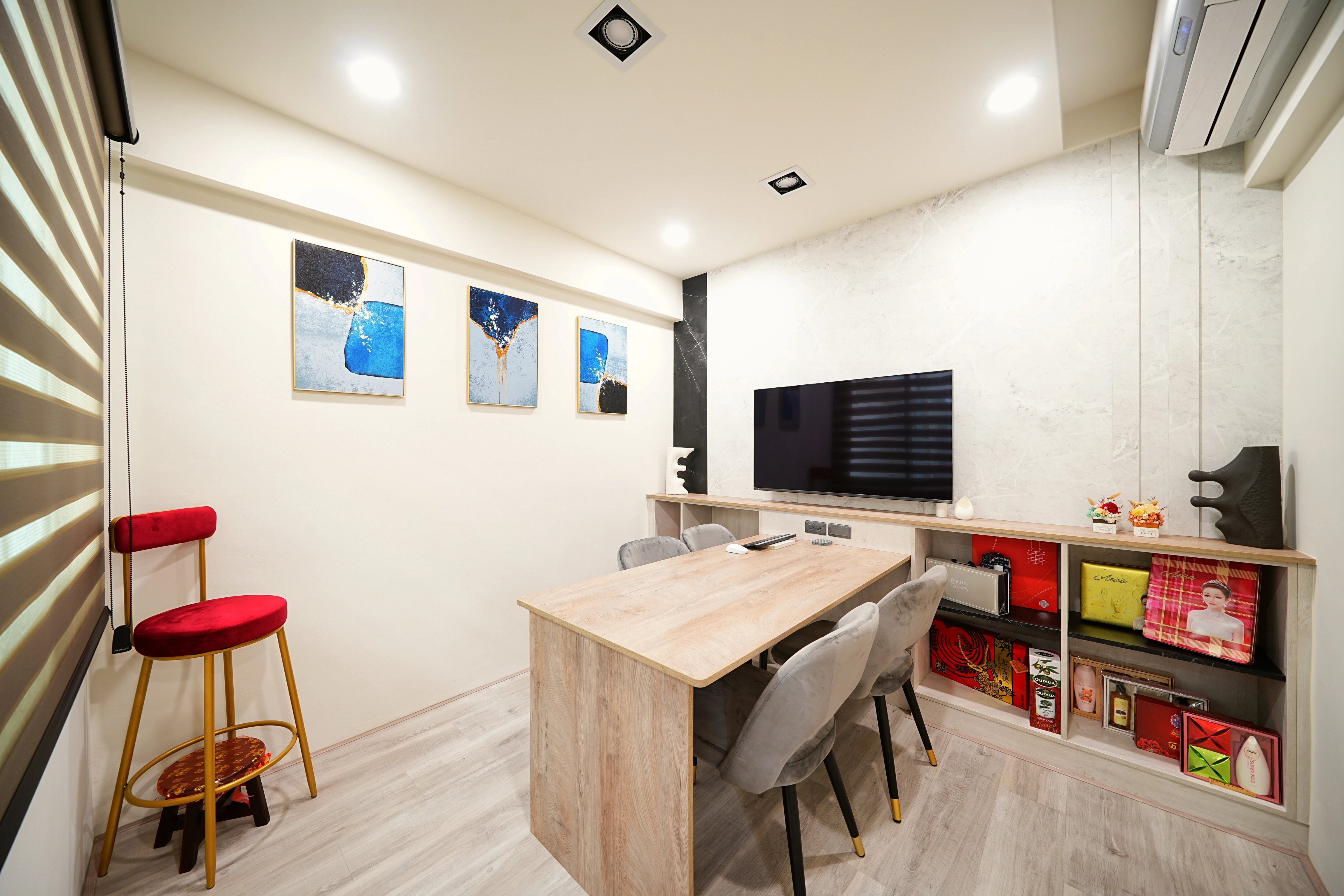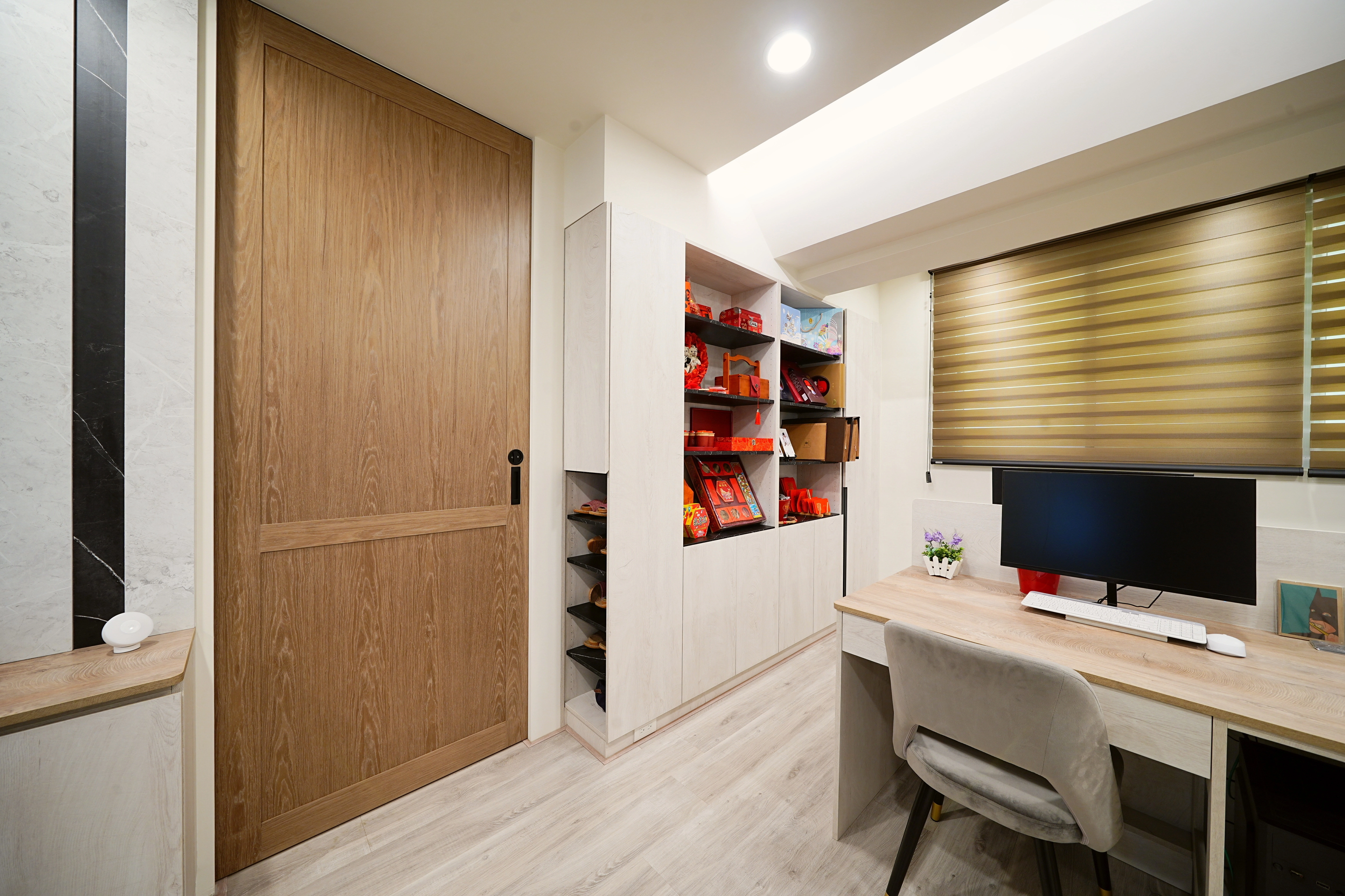 私領域則整合系統書桌與衣櫃,並細膩配置緩衝五金,大幅提升日常使用的手感。德盈堅持選用高品質台南系統家具,從板材選色到工法細節,皆旨在為屋主構築出兼具美感與實用性的美學居所,讓 18 坪小空間也能擁有從容不迫的生活質感。