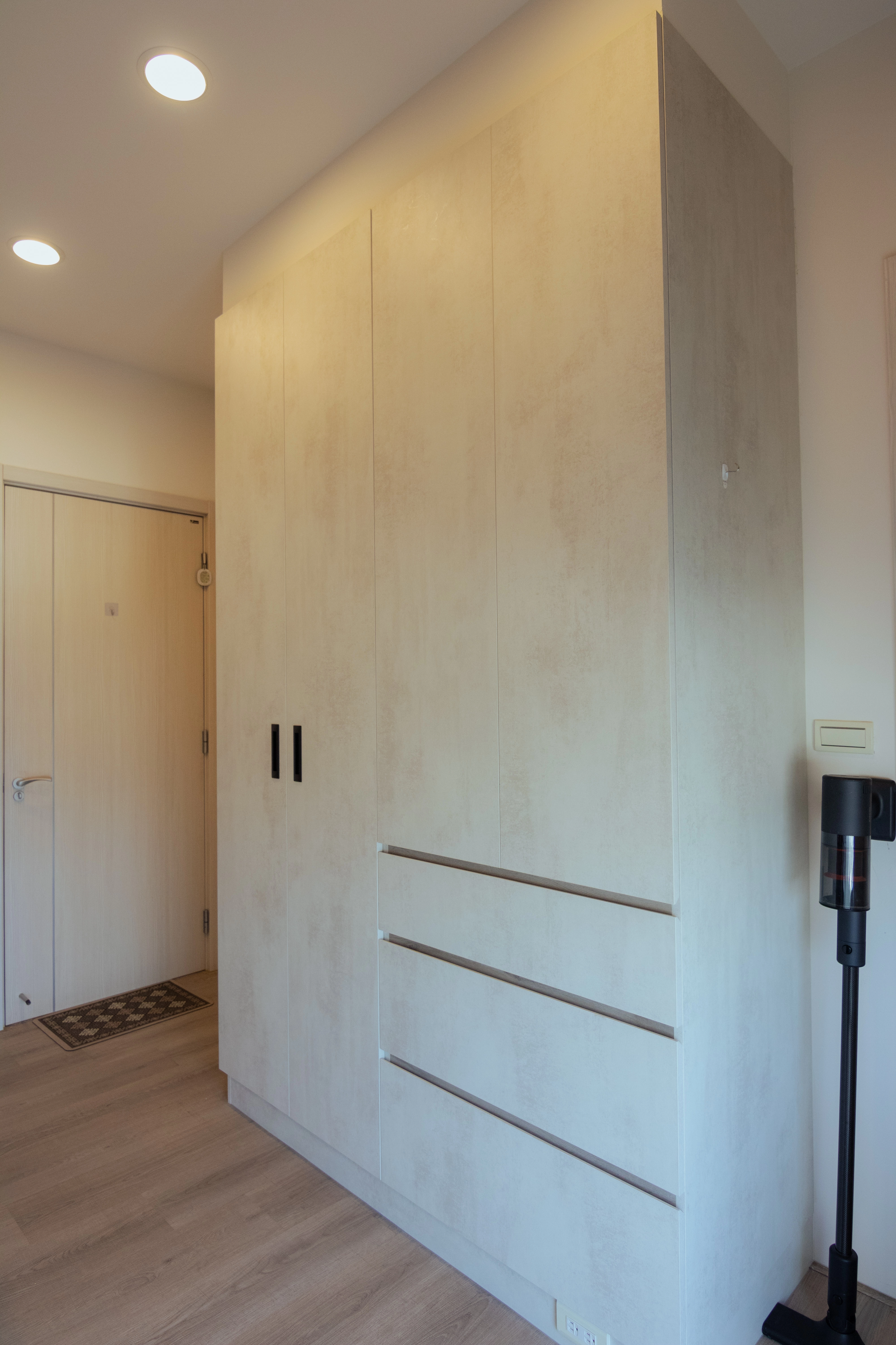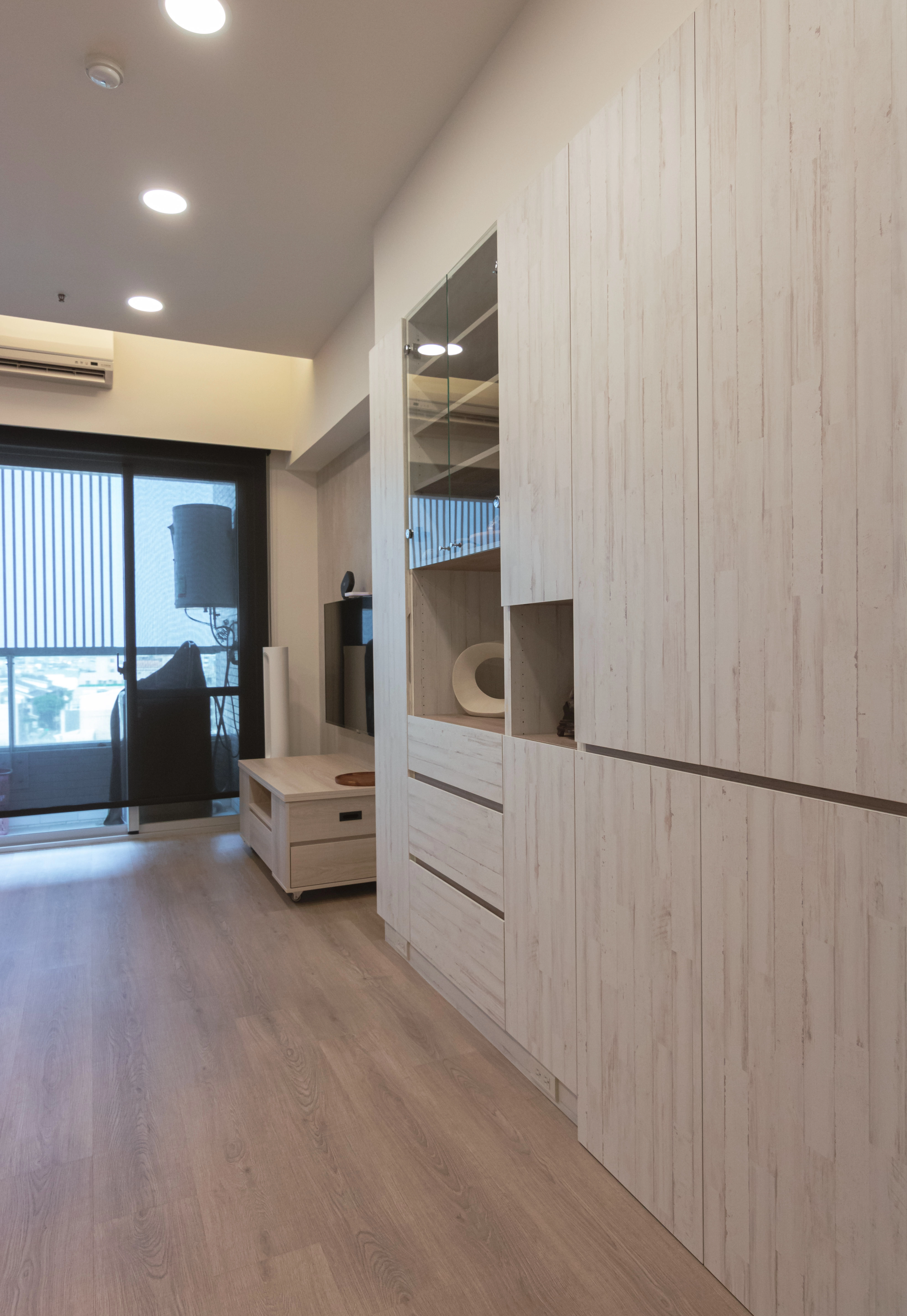 台南系統家具是德盈團隊的指標專長,本案為經典兩房配置,我們從玄關處便開始佈局,運用溫潤木作結合系統鞋櫃,型塑出明亮通透的入戶氛圍。透過精準規劃,將受限的坪數轉化為高效實用的生活場域。