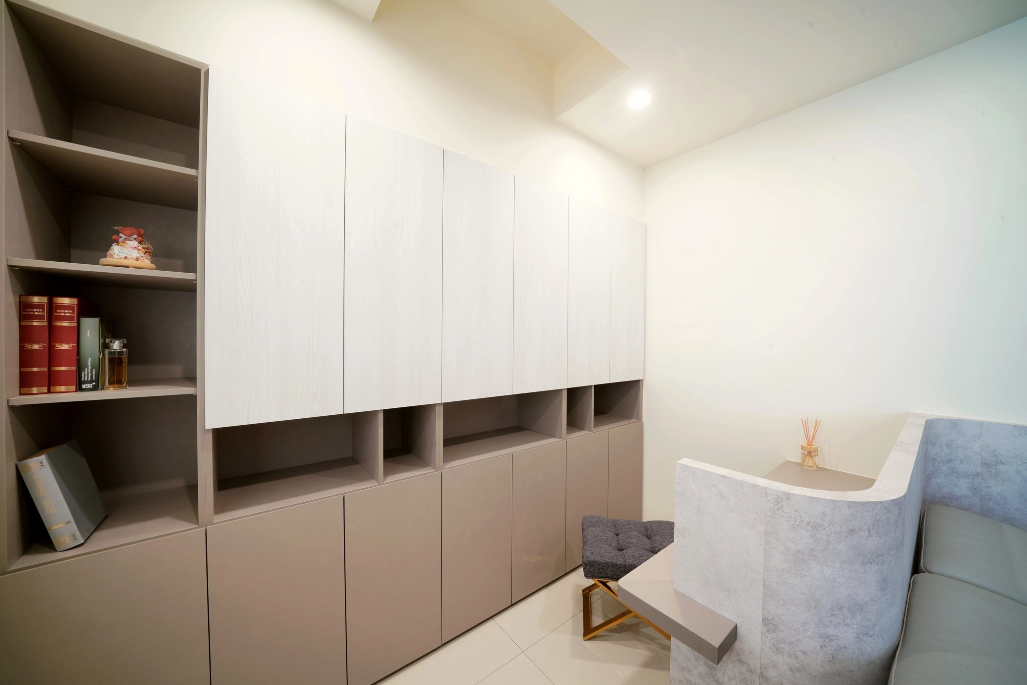 書桌區的色調與材質,刻意與全室裝潢相互呼應,讓書房自然融入整體風格,一點都不突兀。系統櫃不只是收納工具,本身就是空間裡的設計亮點。每個角落都耐看、都有質感,居家美學自然而然就到位了。